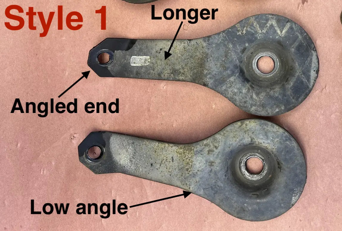 STYLE 1: (angled pattern around small hole at end of brace, low bend angle, longer straight section)