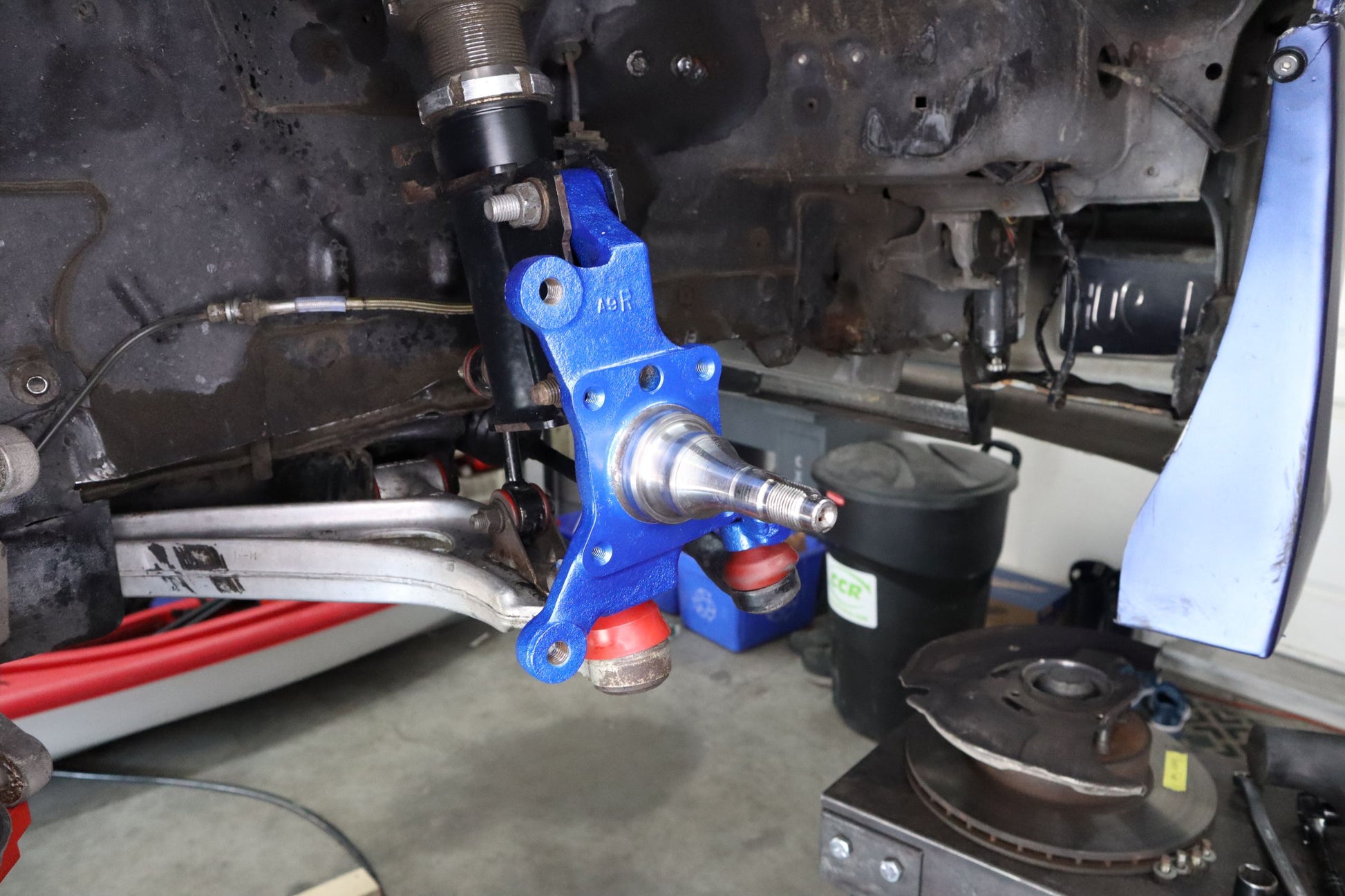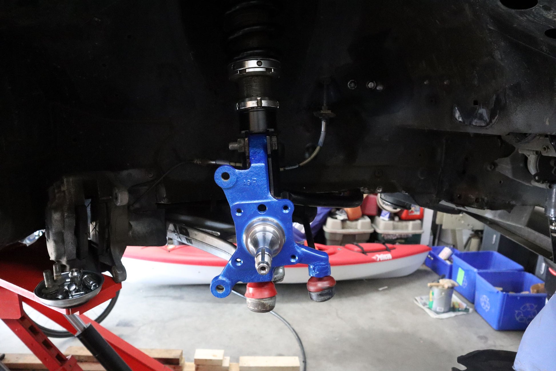 It is recommended to run around 30mm control arm extension with slightly increased caster (PBM control arms are a great choice to achieve this) with this knuckle, along with a low offset wheels/wheel spacers for clearance. The extended control arms help get more negative camber up front and a higher caster setting over the FC's stock 4 degrees. You can run these with stock control arms and still party however!
